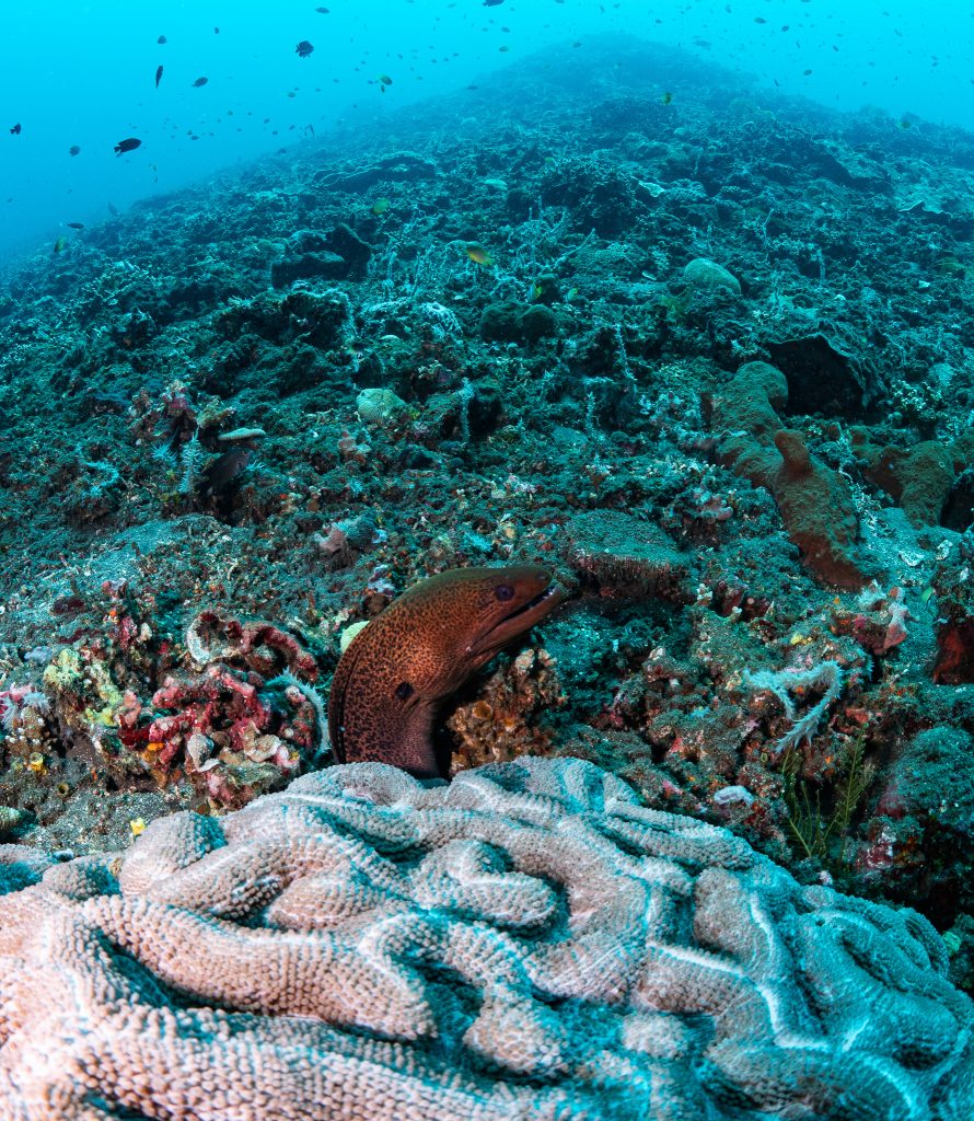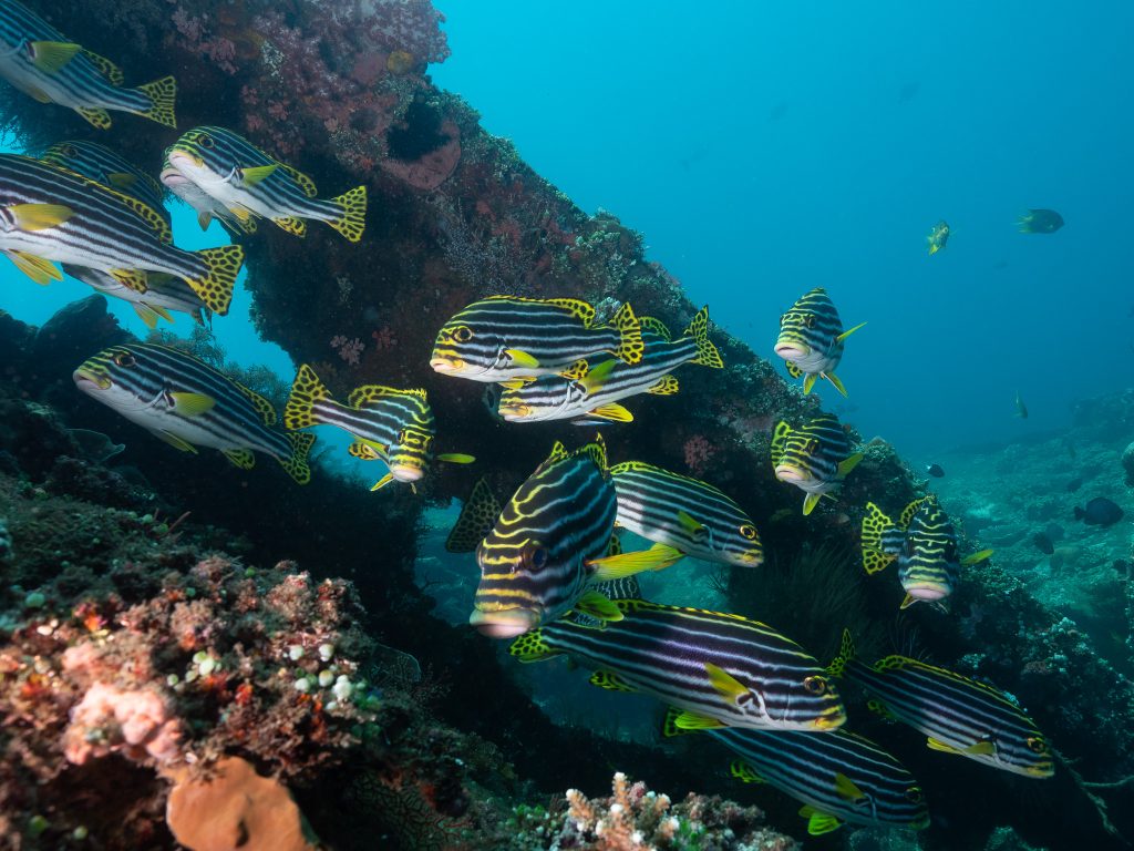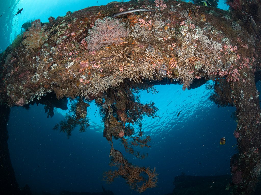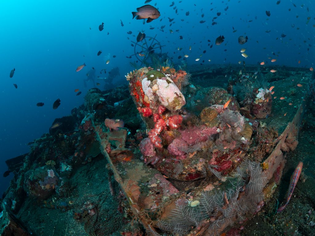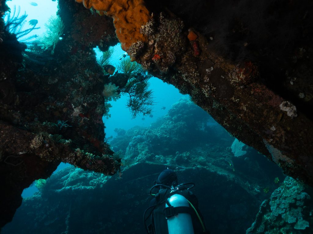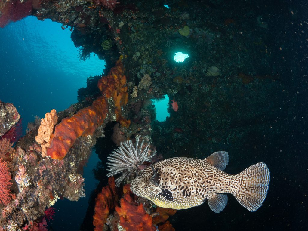 Beyond the Liberty, Tulamben’s volcanic coastline is full of dramatic underwater landscapes — sheer walls, ridges of lava rock, and coral gardens where turtles and reef sharks cruise by. For a wide-angle photographer, it’s a playground: natural light beams streaming through the wreck, silhouettes of divers framed against coral arches, and the chance to capture the scale of Bali’s underwater world.