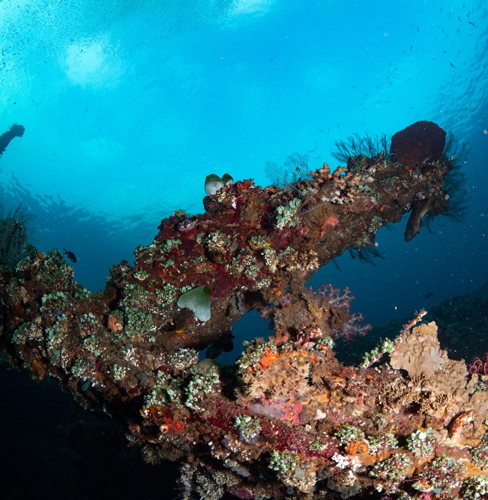 While Tulamben is world-renowned for its critters, it’s also home to some of the most striking wide-angle scenes in Bali. The USAT Liberty wreck rests just off the beach — a huge structure draped in soft corals, alive with schooling jacks, bumphead parrotfish, and clouds of anthias. Every dive here feels different as the light shifts through the water, revealing new colours and textures across the wreck and reefs.